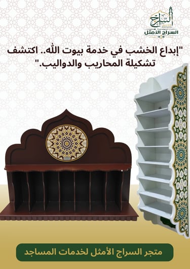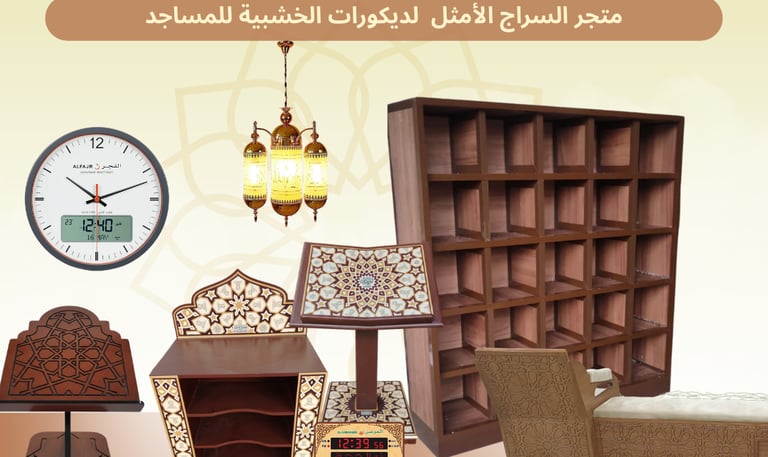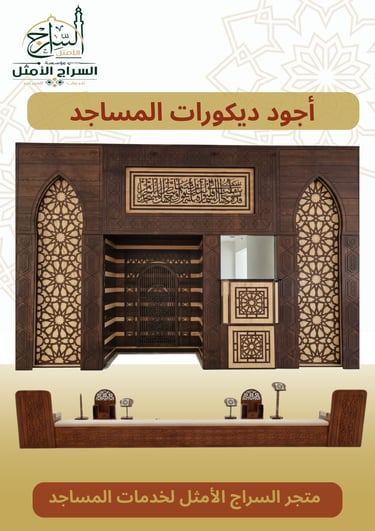 كما نوفر تجهيزات المساجد من أنظمة الصوتيات، كاميرات المراقبة، ديكورات المحراب والمنبر، سجادات المساجد، الشاشات والساعات الإلكترونية، إضافة إلى دواليب الثلاجات والبرادات لسقيا الماء، مع الالتزام بأعلى معايير الجودة والدقة في التنفيذ.